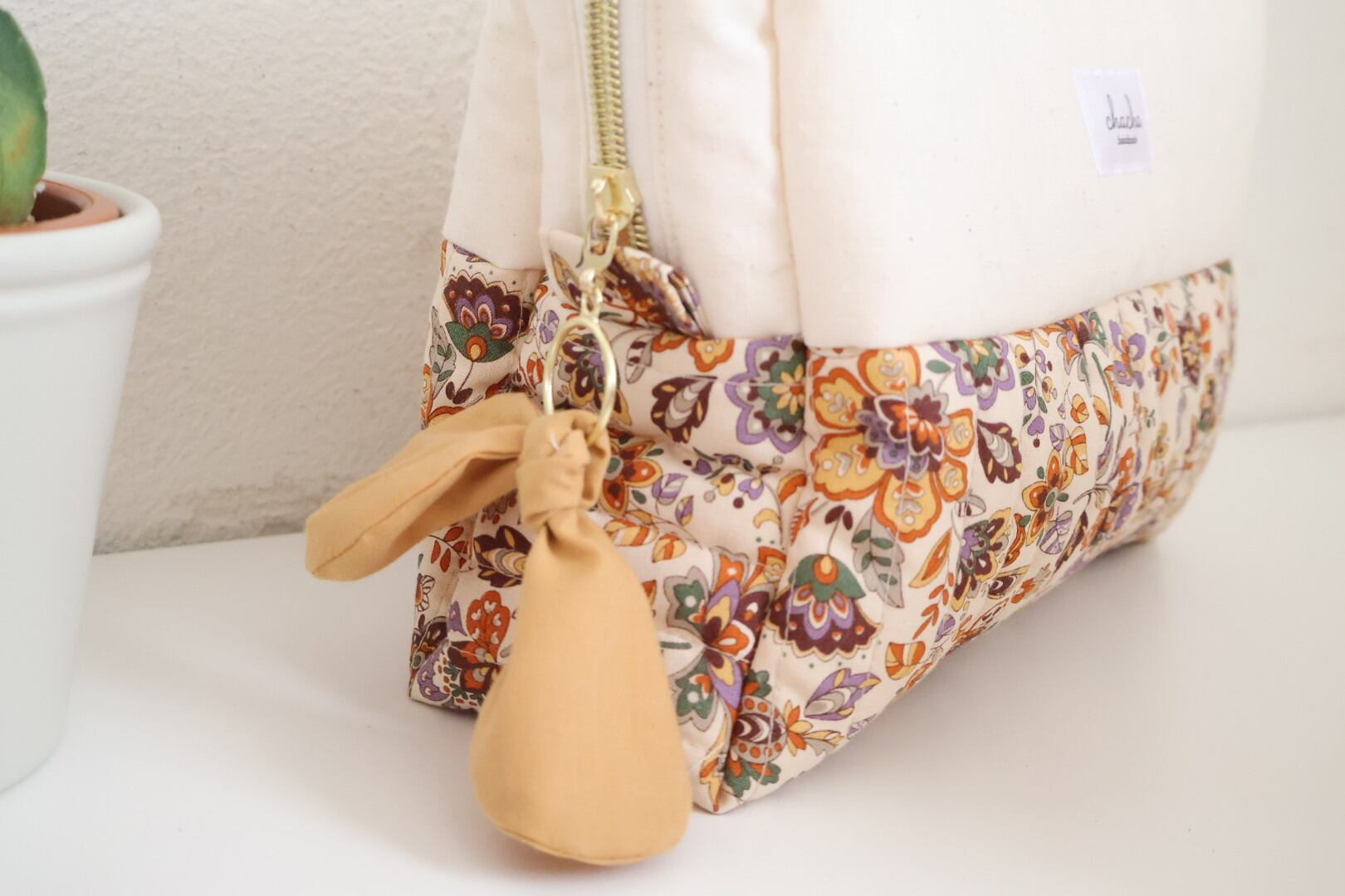 ボヘミアンフラワー ❁ スクエアポーチ(生成り)