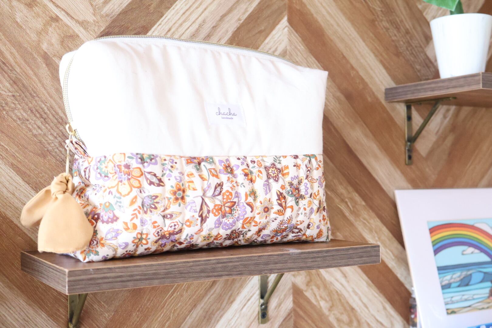 バイカラーのボヘミアンフラワーポーチです