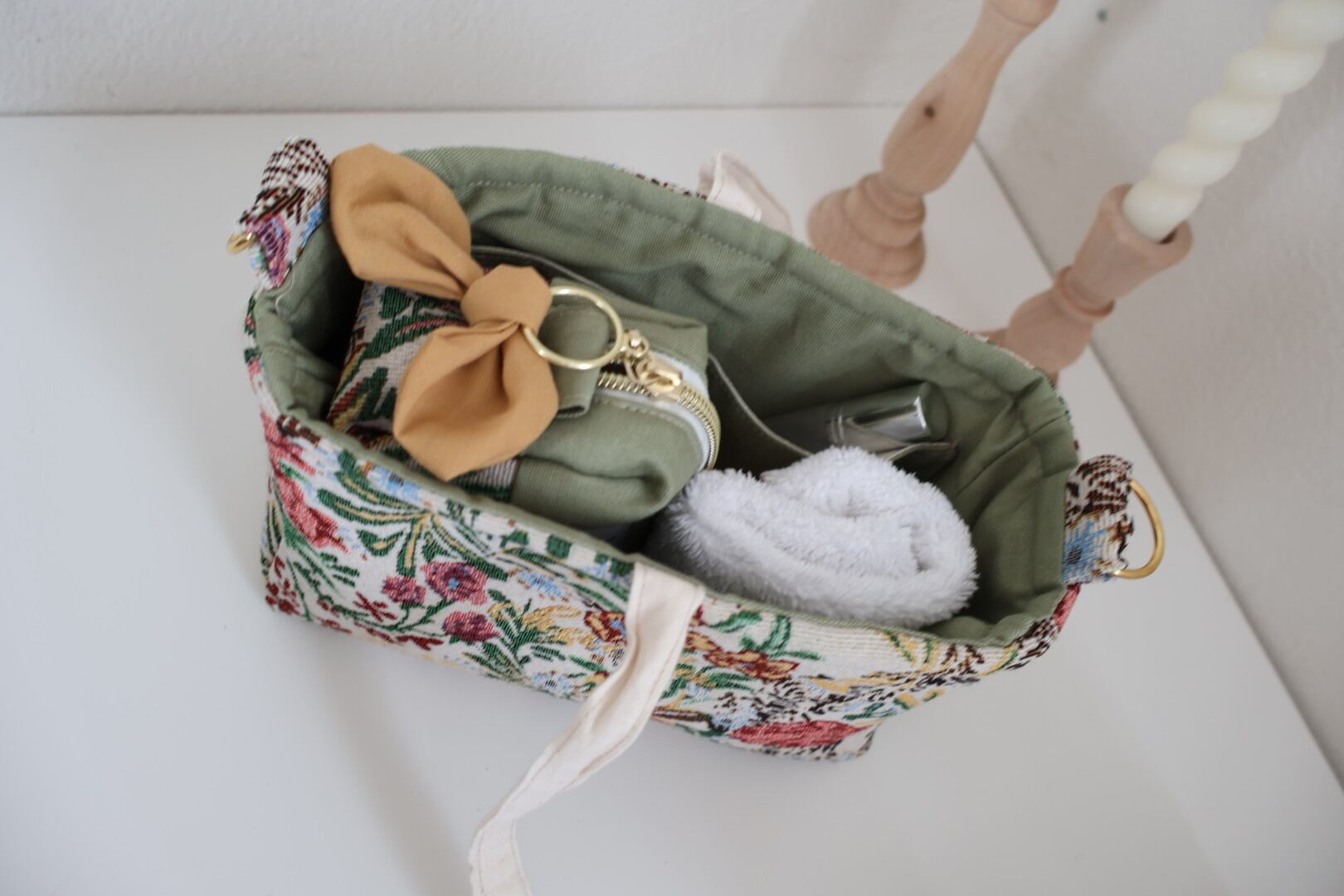 ミニ財布、ミニポーチ、タオル、スマホ、リップなどが入ります